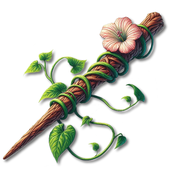 A smooth wooden wand with thin flowering vines that twist and grow around it. The wand emits a green haze in a 10-foot radius around itself.